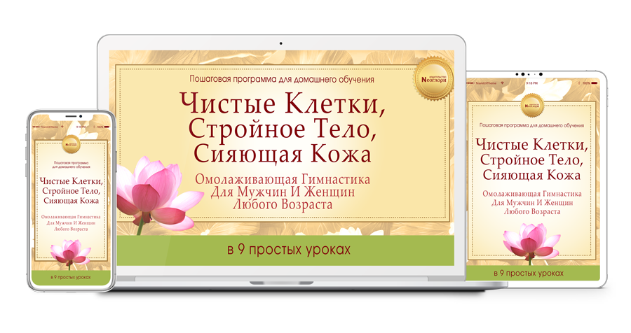 Вы узнали, что можете получить максимальную пользу от этих омолаживающих упражнений благодаря программе для домашнего обучения «Чистые Клетки, Стройное Тело, Сияющая Кожа. Омолаживающая Гимнастика Для Мужчин И Женщин Любого Возраста в 9 простых уроках», которая поможет вам в достижении предсказуемых успешных результатов