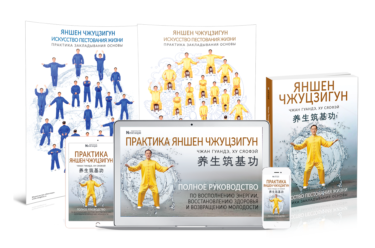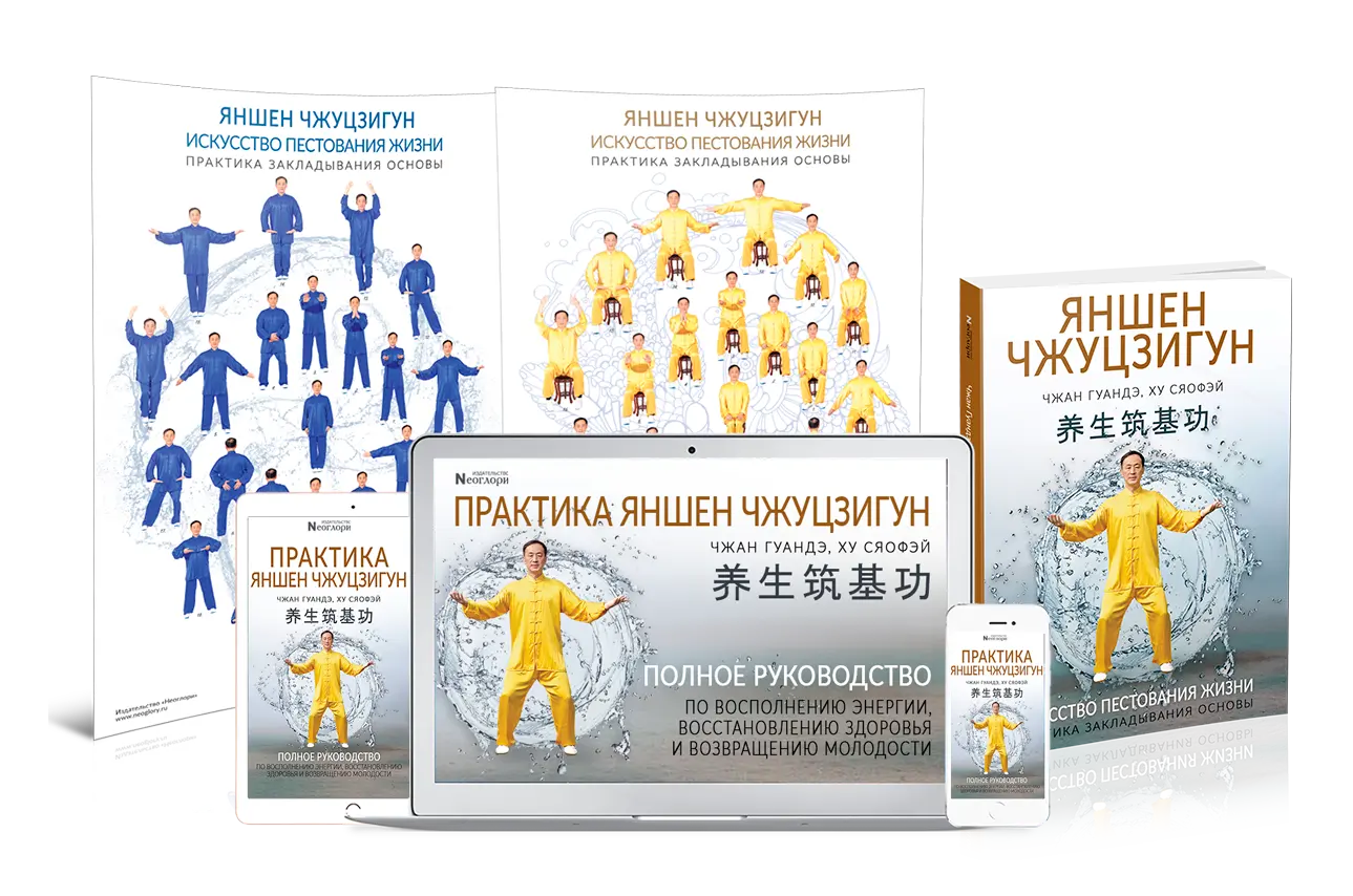 В полный комплект тренинга мы также включили великолепную книгу профессора Чжана Гуандэ и профессора Ху Сяофэя «Искусство Пестования Жизни: практика закладывания основы», а также комплект постеров с упражнениями.
