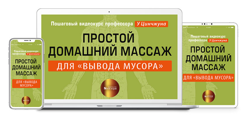 Пошаговый видеокурс профессора У Цинчжуна «Простой домашний массаж» для «вывода мусора».